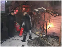 2020年1月28日晚20點50分,沈陽廣播電視臺北院家屬樓南側1單元飯店突發(fā)火情,家屬樓值班人員第一時間發(fā)現(xiàn)情況及時與我處門衛(wèi)聯(lián)系尋求幫助,門衛(wèi)保安隊員在了解情況后馬上聯(lián)系值班班長孫永升,孫永升出于職業(yè)的敏感性,馬上啟動緊急預案,向監(jiān)控中心及隊長進行報告后,帶領保安隊員及消防設備一同趕赴火災現(xiàn)場。