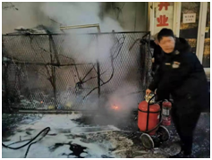 20點56分,監(jiān)控室負責人徐志民,保安班長孫永升,隊員馮玲瓏、孫永翔,家屬樓物業(yè)負責人劉兆彥及家屬樓值班人員組成的救火隊伍迅速趕到現(xiàn)場,由監(jiān)控室負責人徐志民單位現(xiàn)場指揮。由于現(xiàn)場火勢較大,近三米高的線路已經(jīng)被完全燒毀,為避免發(fā)生二次爆炸及更為嚴重的后果,徐志民指揮大家先用滅火器將火情進行控制,并將液化氣罐從火場中搶救出來,避免了液化氣罐發(fā)生爆炸,此時張主任、王主任、宮臣、隊長肇興柱等人先后抵達火災現(xiàn)場,對火災撲救工作進行了詳細的部署,而后眾人利用滅火器、消防栓等消防設施徹底將明火完全撲滅。與此同時消防車也及時趕到,并對火災現(xiàn)場進行了詳細確認,在確保沒有安全隱患后詢問了火災發(fā)生的詳細情況,并對英勇救火的所有人表達敬意。沈陽廣播電視臺領導得知此事后十分重視,第一時間詢問火災處置情況及保安隊員的安全情況,并對此次火災應急處置深表贊揚。