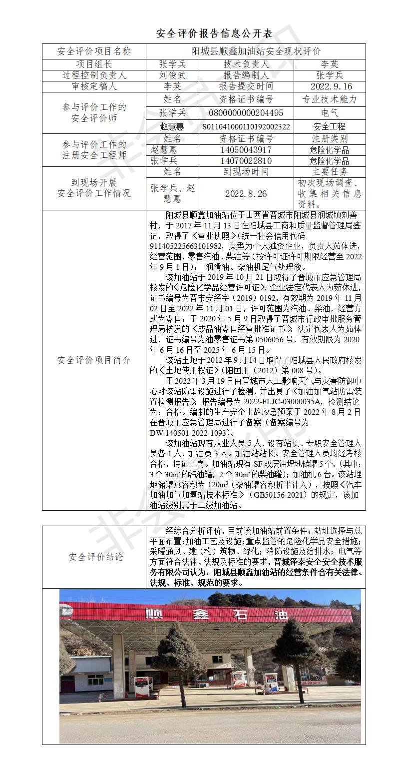 陽(yáng)城縣順鑫加油站安全現(xiàn)狀評(píng)價(jià)