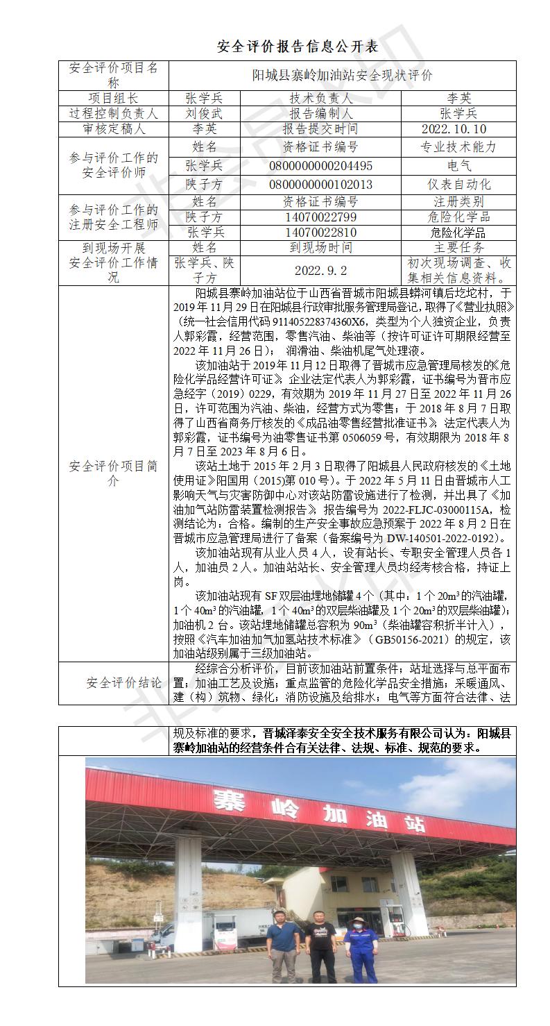 陽(yáng)城縣寨嶺加油站安全現(xiàn)狀評(píng)價(jià)