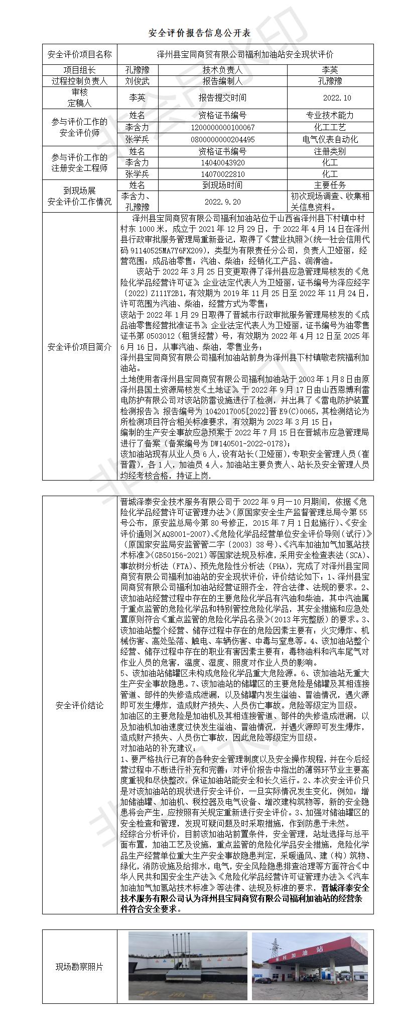澤州縣寶同商貿(mào)有限公司福利加油站安全現(xiàn)狀評價