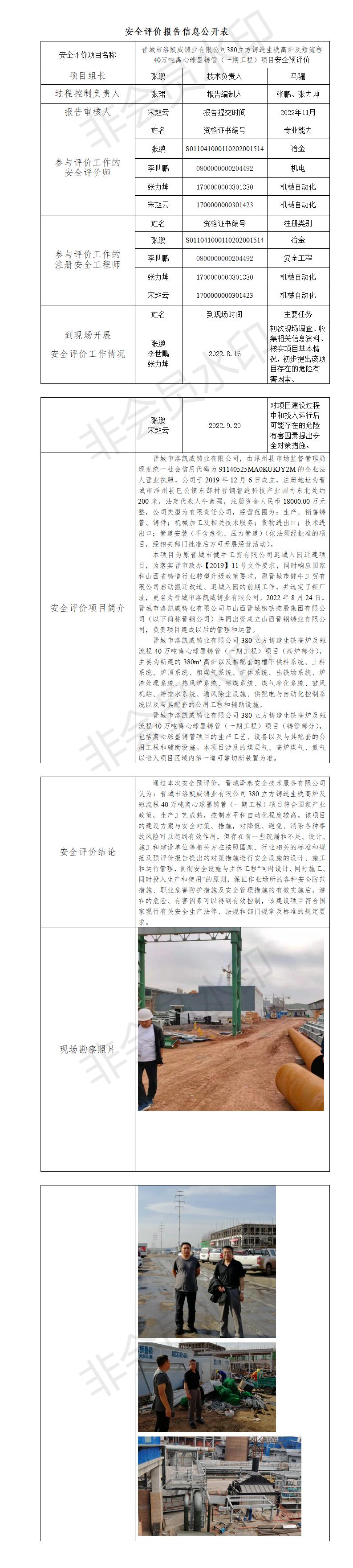 | 晉城市洛凱威鑄業(yè)有限公司380立方鑄造生鐵高爐及短流程40萬噸離心球墨鑄管(一期工程)項(xiàng)目安全預(yù)評(píng)價(jià) |