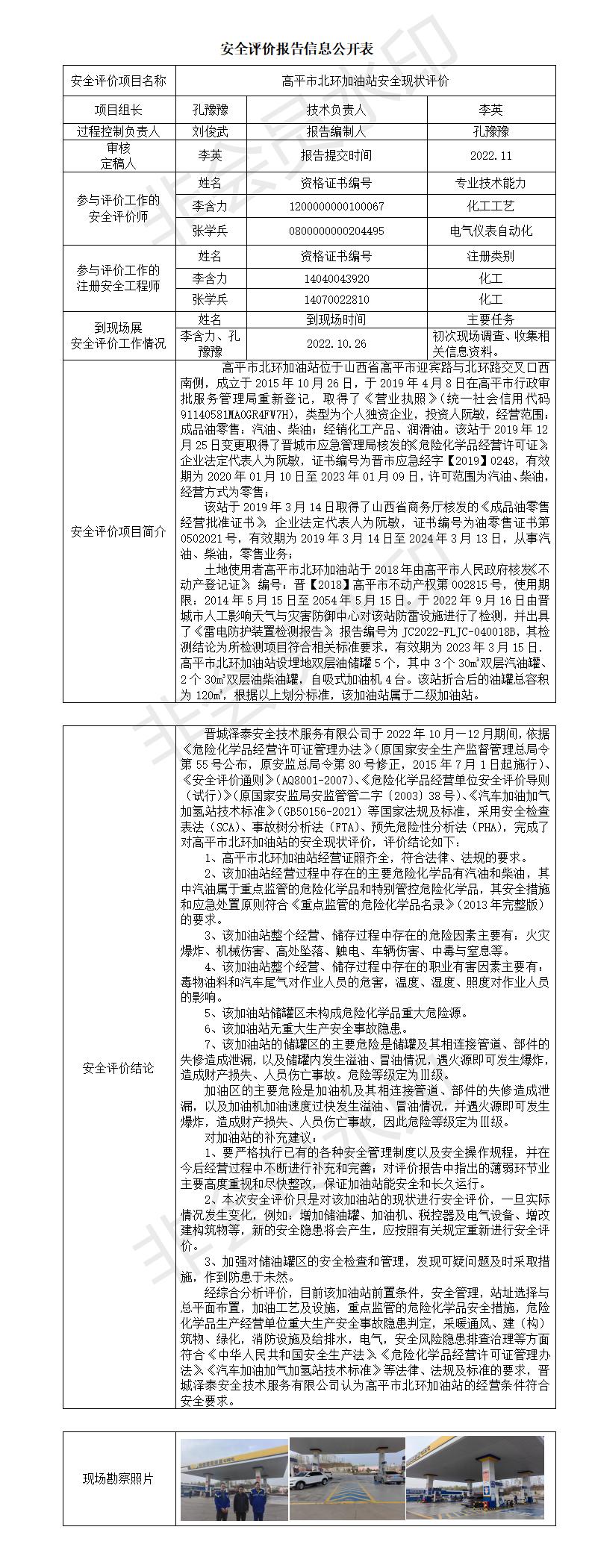 高平市北環(huán)加油站安全現(xiàn)狀評(píng)價(jià)