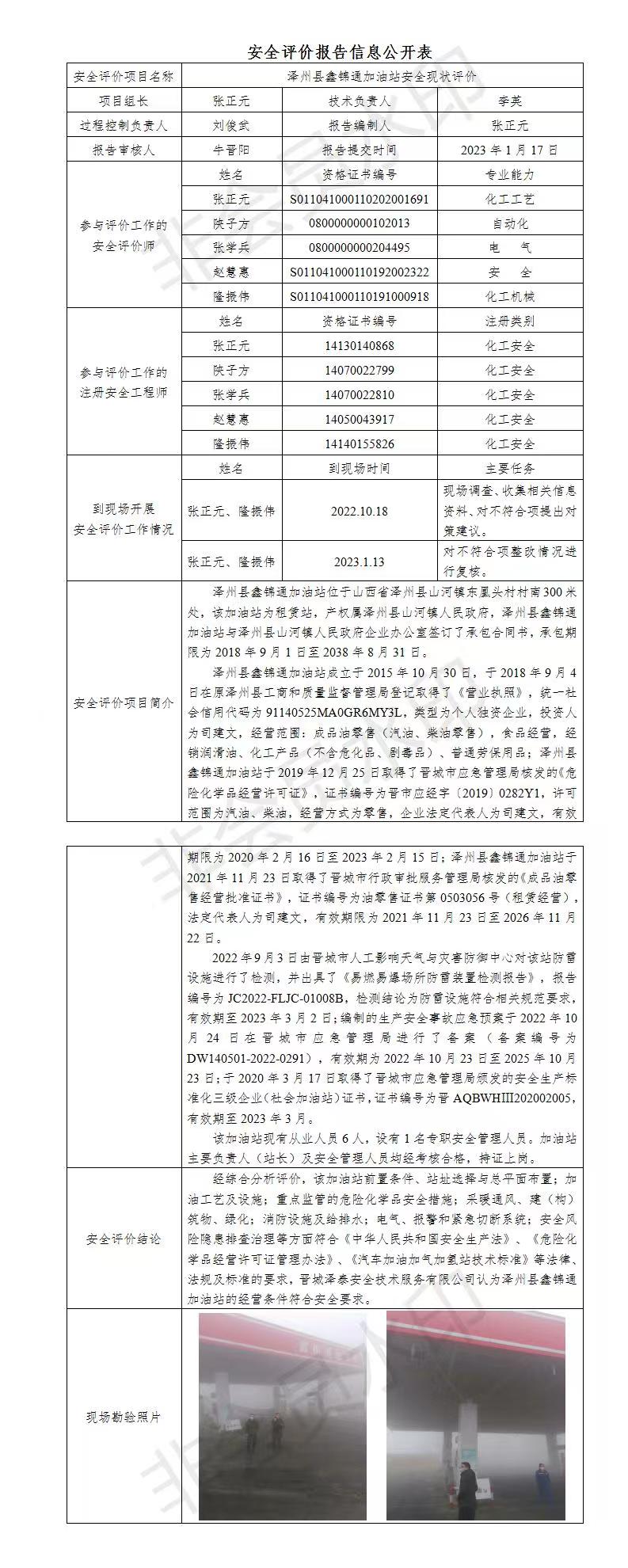 澤州縣鑫錦通加油站安全現(xiàn)狀評價