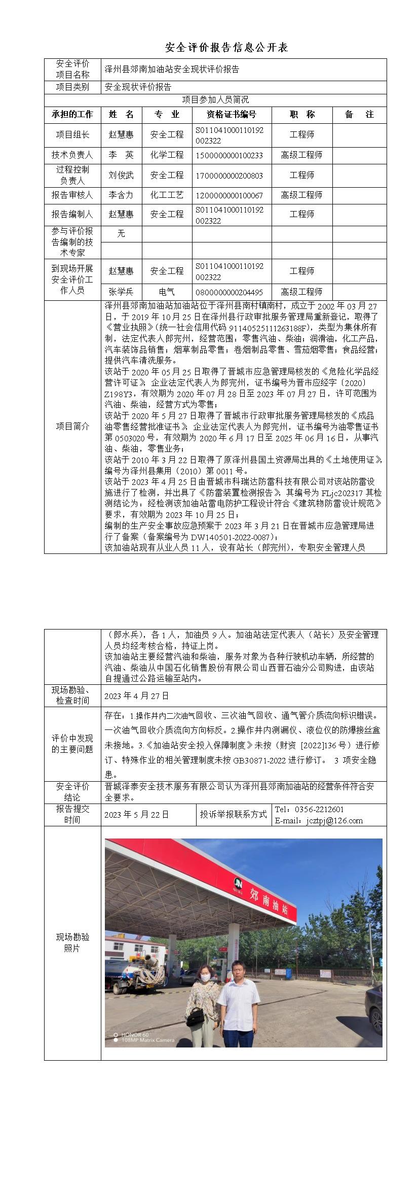 澤州縣郊南加油站安全現(xiàn)狀評價報告