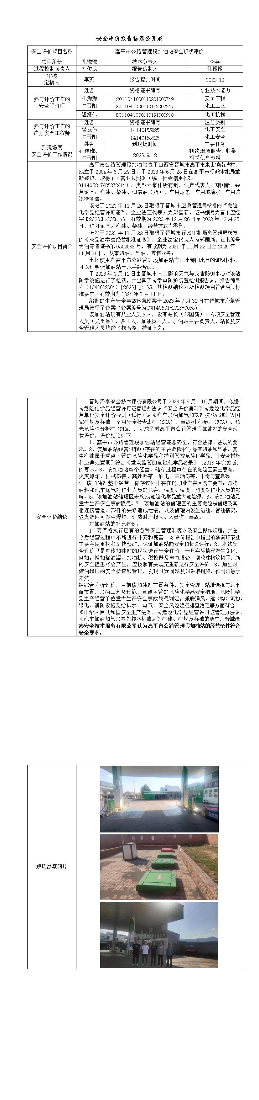 高平市公路管理段加油站安全現(xiàn)狀評(píng)價(jià)