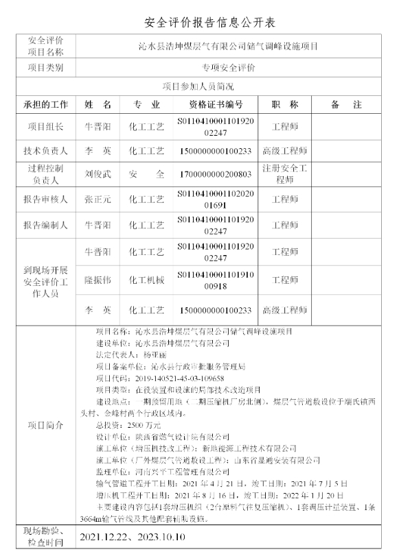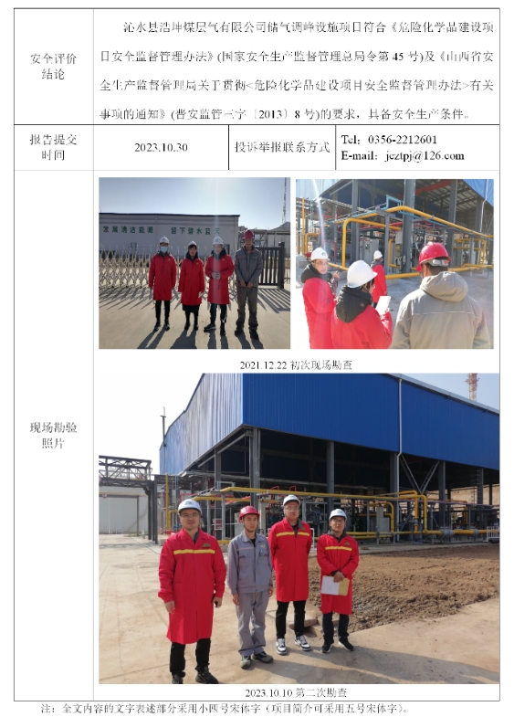 沁水縣浩坤煤層氣有限公司儲(chǔ)氣調(diào)峰設(shè)施項(xiàng)目
