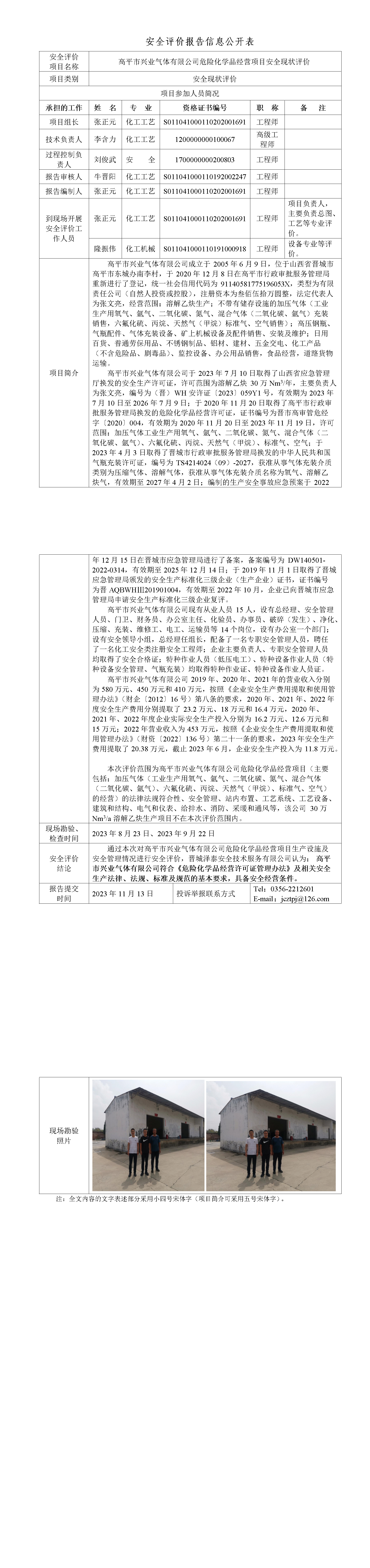 高平市興業(yè)氣體有限公司危險化學(xué)品經(jīng)營項目安全現(xiàn)狀評價