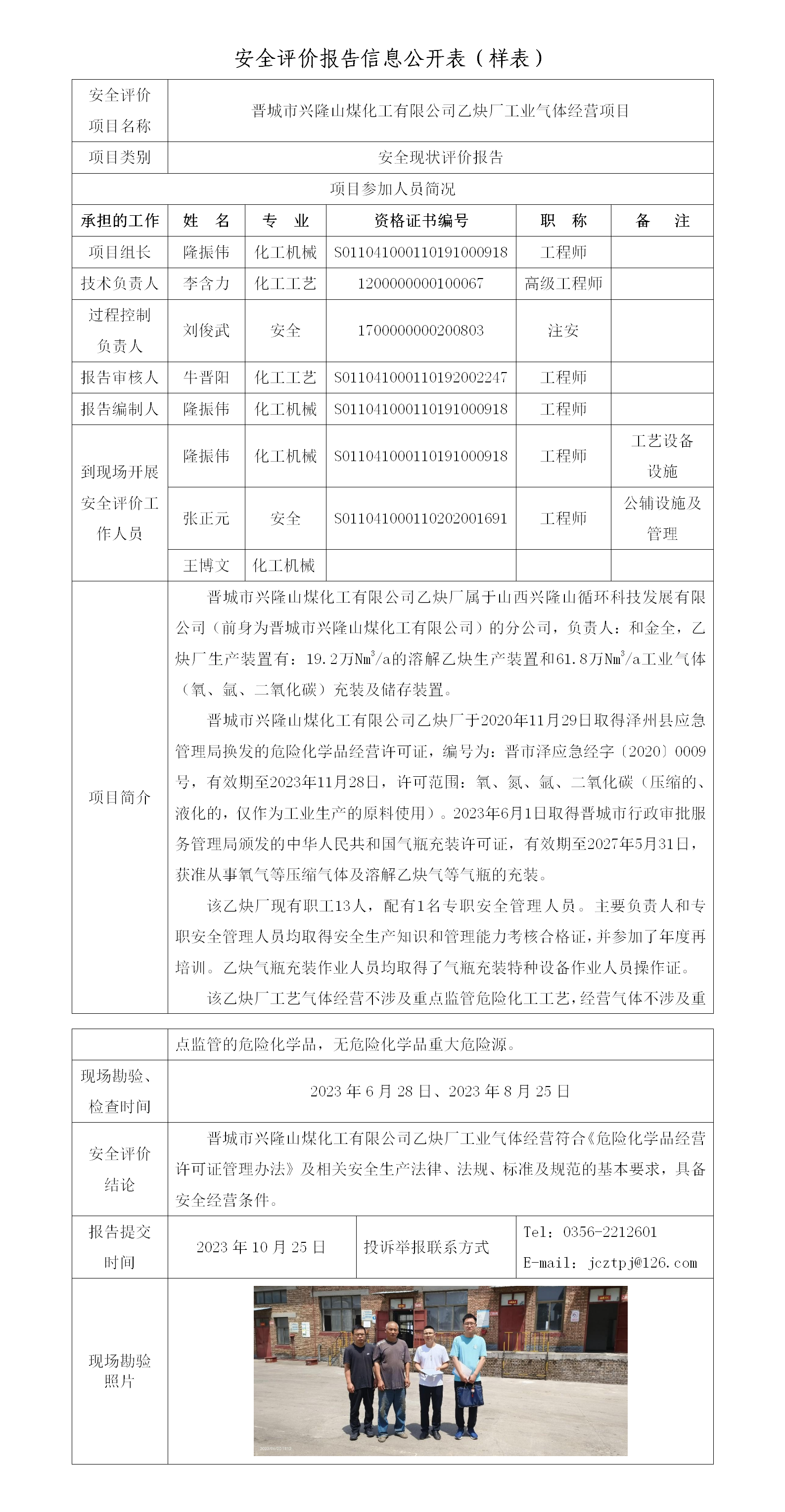 晉城市興隆山煤化 工有限公司乙炔廠工業(yè)氣體經(jīng)營項目