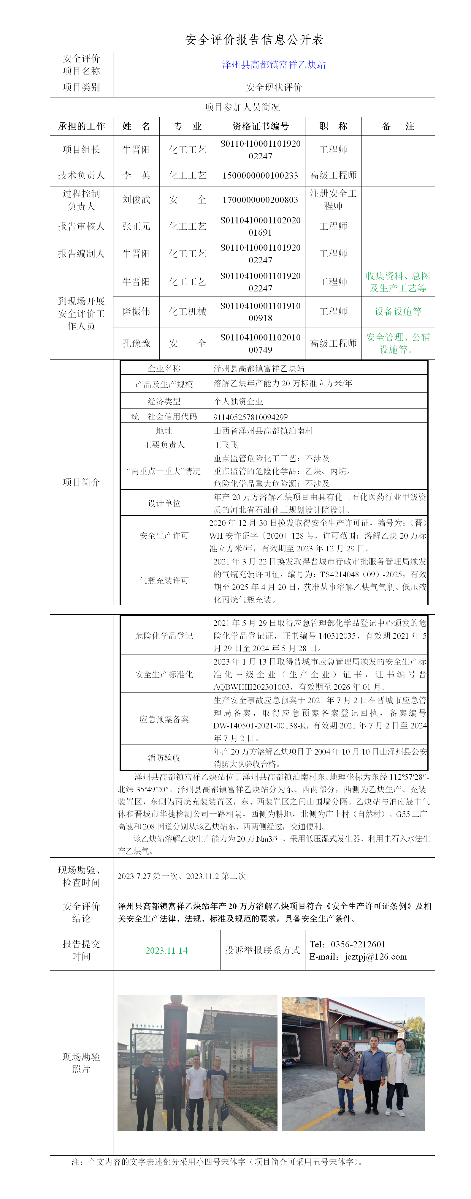 澤州縣高都鎮(zhèn)富祥乙炔站安全現(xiàn)狀評價