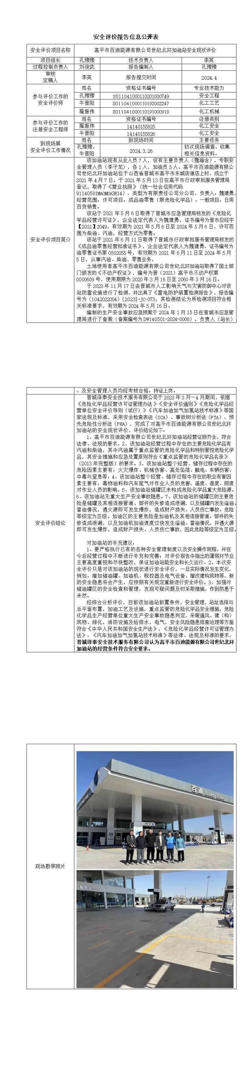 高平市百迪能源有限公司世紀(jì)北環(huán)加油站安全現(xiàn)狀評(píng)價(jià)