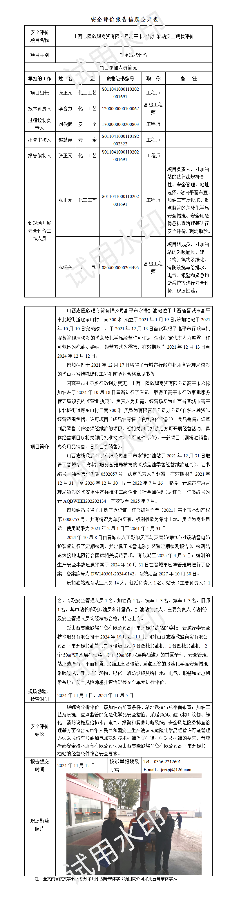 山西志隆欣耀商貿(mào)有限公司高平市永䘵加油站安全現(xiàn)狀評價