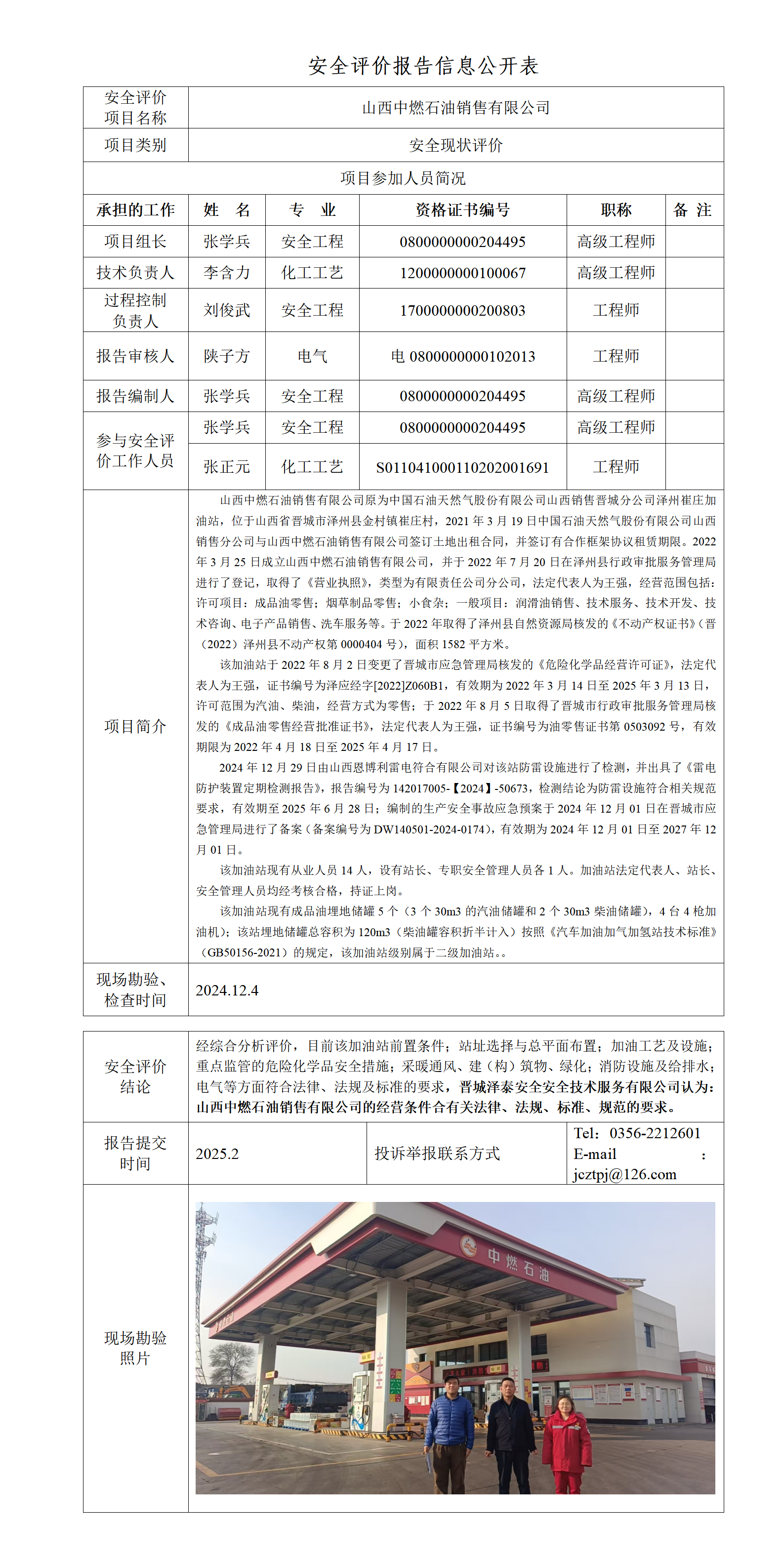 山西中燃石油銷售有限公司安全現(xiàn)狀評價(jià)