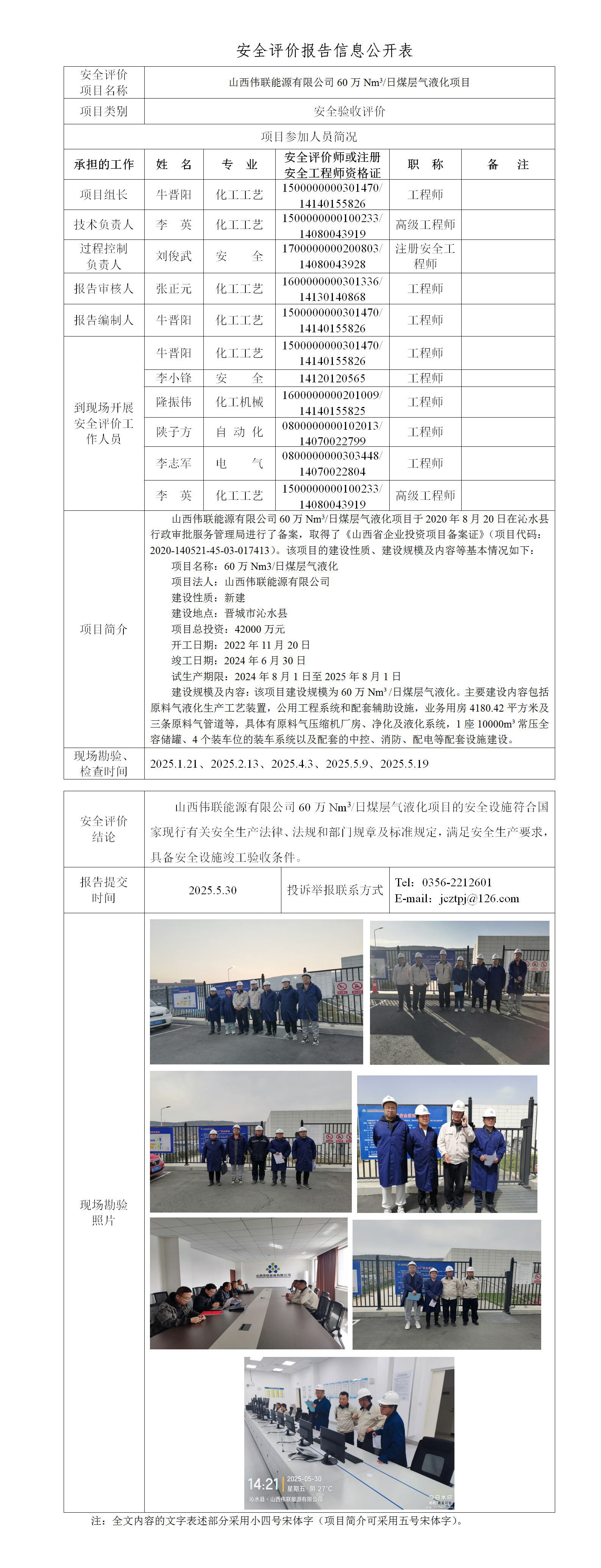山西偉聯(lián)能源有限公司 60 萬 Nm3/日煤層氣液化項目安全驗收評價信息公開