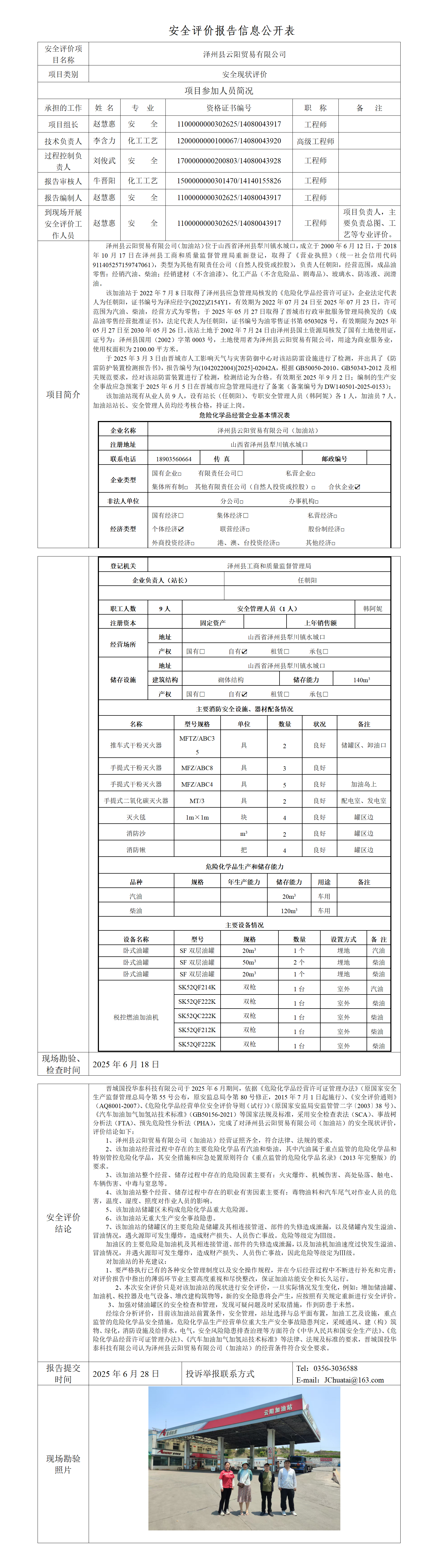 澤州縣云陽貿(mào)易有限公司安全現(xiàn)狀評價