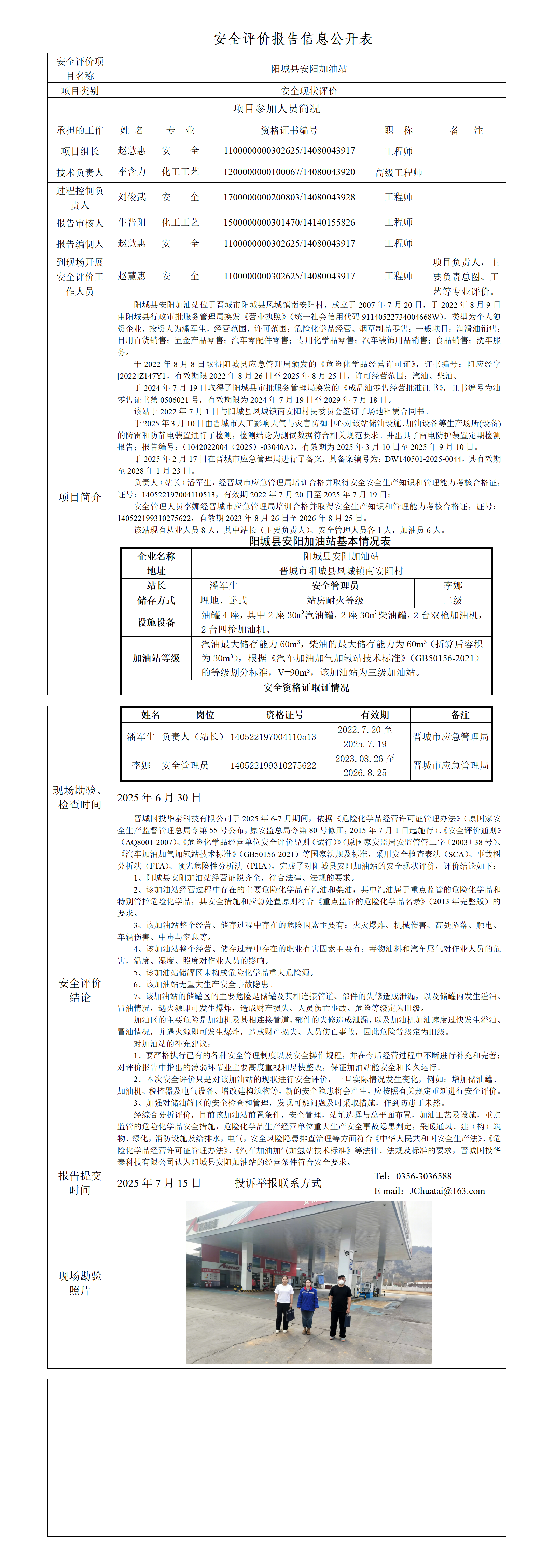 陽城縣安陽加油站安全現(xiàn)狀評(píng)價(jià)