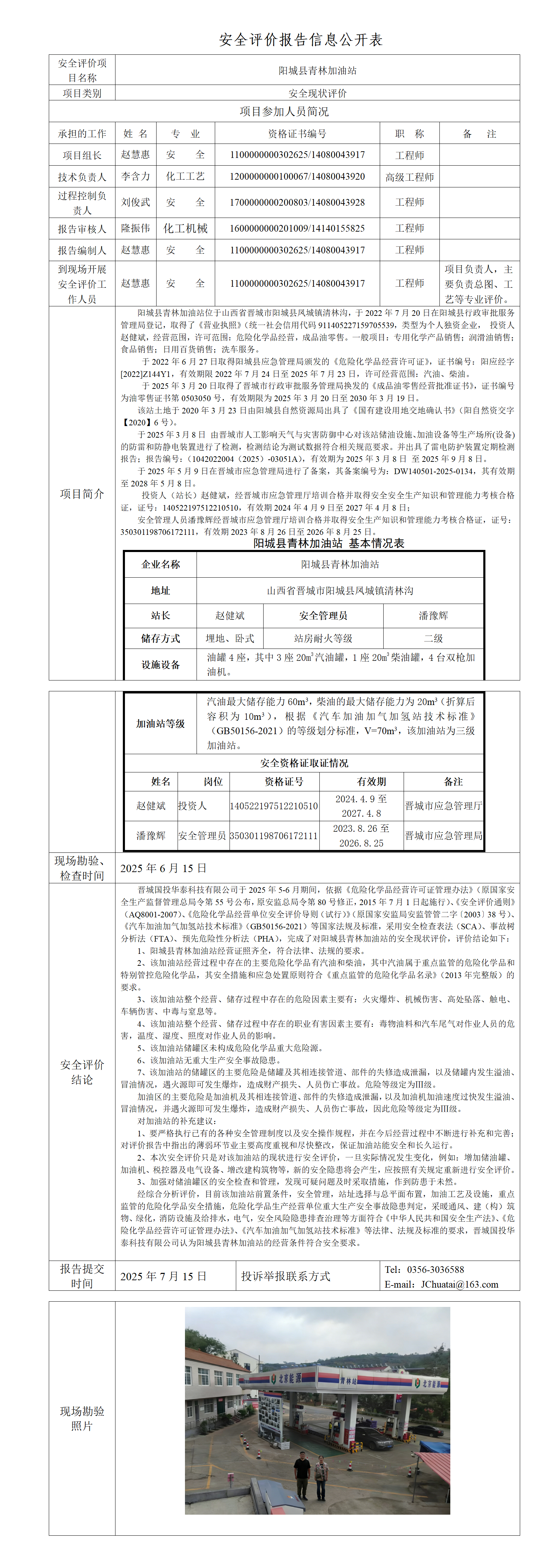 陽(yáng)城縣青林加油站安全現(xiàn)狀評(píng)價(jià)