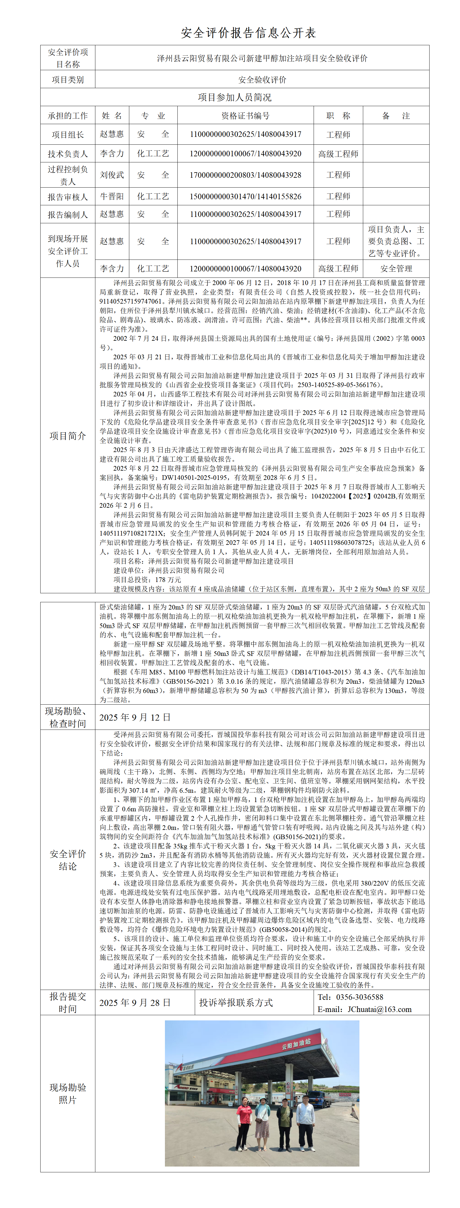 澤州縣云陽貿(mào)易有限公司新建甲醇加注站項目安全驗收評價