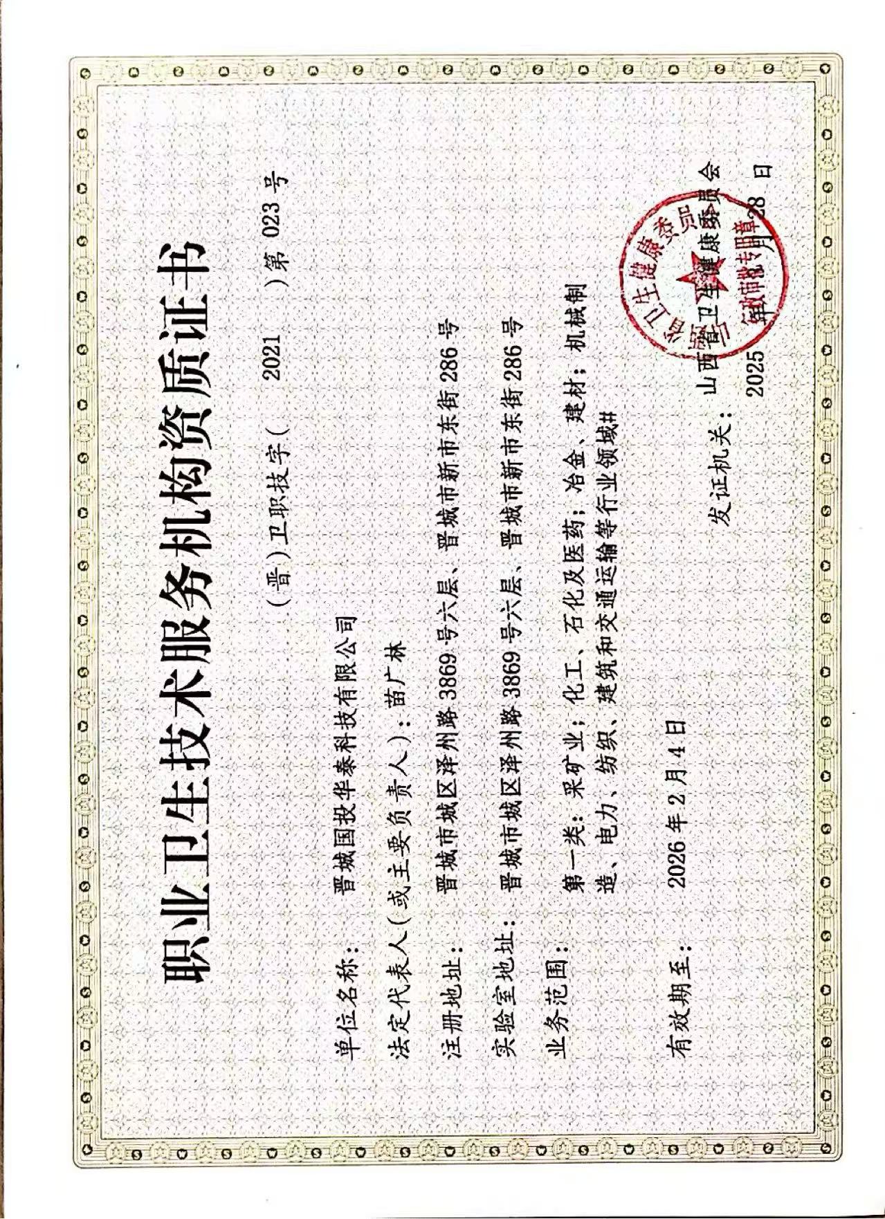 職業(yè)衛(wèi)生技術(shù)服務(wù)機(jī)構(gòu)資質(zhì)證書